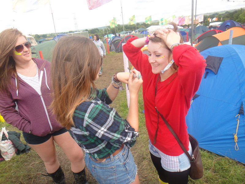 When we first arrived the sun was shining and we were all in good spirits, this however didn't last long. We joined the ever growing queue and shortly after it began to chuck it down. Luckily the kind people at Fieldview were handing out ponchos, so I did manage to shelter myself from the rain a little! Sadly our sleeping bags weren't so lucky and in the end myself and Natalie went home to change them haha. After the nightmare of putting the tent up in the rain etc the weather cleared up and the rest of the weekend was really good!